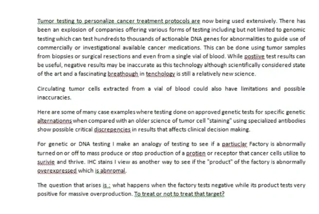 CMET and EGFR staining showed "positive" overexpression of targeted proteins/recepotrs yet standard guidelines used to determine use of treatment on DNA genomic testing were ngeative.
